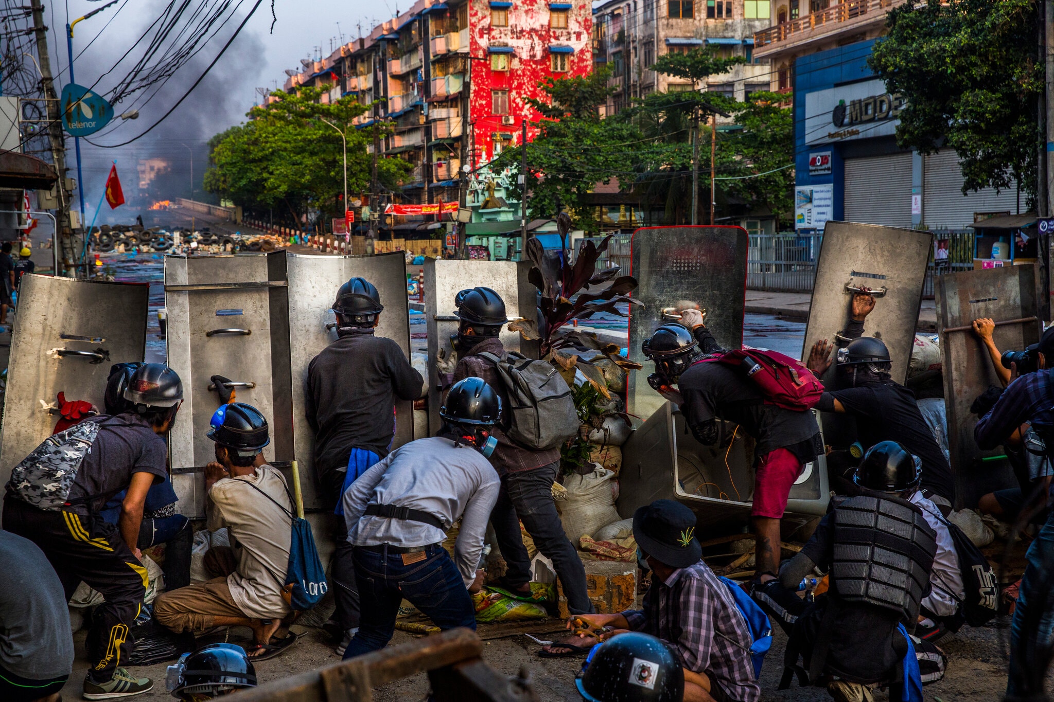 After weeks of peaceful protests, the front line of Myanmar’s resistance is mobilizing into a kind of guerrilla force. In the cities, protesters have built barricades to protect neighborhoods from military incursions and learned how to make smoke bombs on the internet. In the forests, they are training in basic warfare techniques and plotting to sabotage military-linked facilities.